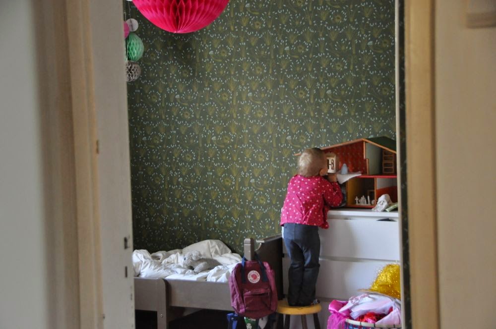 October has strated nicely - and beautifully. There was a gorgeus morning fog yesterday and first delicate frost on the ground today. We also went to a field yesterday,to take pictures with friends and it was so fun! We took a little suitcase full of toys with us and the girls played with them at times but mostly they just ran around,picked dry sticks and bustled around. It was really fun to watch and shoot:) So most of the pictures are from yesterday evening,but there are few from today's frost,Elli who fell asleep on the couch (and the blanket which is finally finished!),Peppi leaving to preschool and Elli's morning plays. I have a lot more pictures from the field so I'm posting another post with them later.